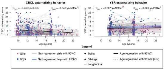- Bartels, M.; Boomsma, D.I.; Hudziak, J.J.; Rietveld, M.J.H.; van Beijsterveldt, T.C.E.M.; van den Oord, E.J.C.G. Disentangling Genetic, Environmental, and Rater Effects on Internalizing and Externalizing Problem Behavior in 10-year-old Twins. Twin Res. Hum. Genet. 2004, 7, 162–175. [Google Scholar] [CrossRef] [PubMed][Green Version]