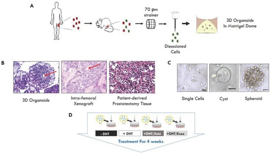 - Gao, D.; Vela, I.; Sboner, A.; Iaquinta, P.J.; Karthaus, W.R.; Gopalan, A.; Dowling, C.; Wanjala, J.N.; Undvall, E.A.; Arora, V.K.; et al. Organoid cultures derived from patients with advanced prostate cancer. Cell 2014, 159, 176–187. [Google Scholar] [CrossRef] [Green Version]