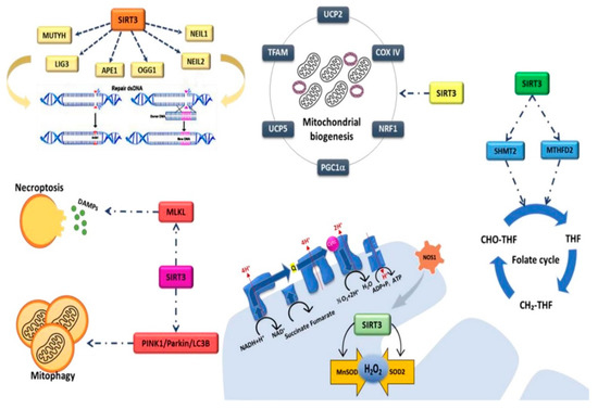 - Zhang, J.; Xiang, H.; Liu, J.; Chen, Y.; He, R.R.; Liu, B. Mitochondrial Sirtuin 3: New emerging biological function and therapeutic target. Theranostics 2020, 10, 8315–8342. [Google Scholar] [CrossRef]