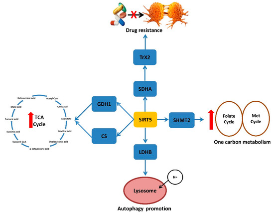 - Shi, L.; Yan, H.; An, S.; Shen, M.; Jia, W.; Zhang, R.; Zhao, L.; Huang, G.; Liu, J. SIRT5-mediated deacetylation of LDHB promotes autophagy and tumorigenesis in colorectal cancer. Mol. Oncol. 2019, 13, 358–375. [Google Scholar] [CrossRef]