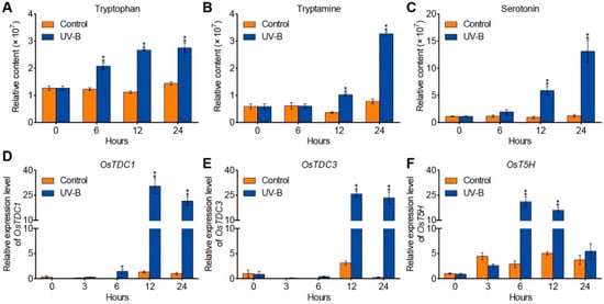 2.1. UV-B Radiation Stimulates Endogenous Serotonin Levels in Rice