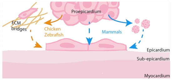 - Cao, J.; Poss, K.D. The epicardium as a hub for heart regeneration. Nat. Rev. Cardiol. 2018, 15, 631–647. [Google Scholar] [CrossRef]