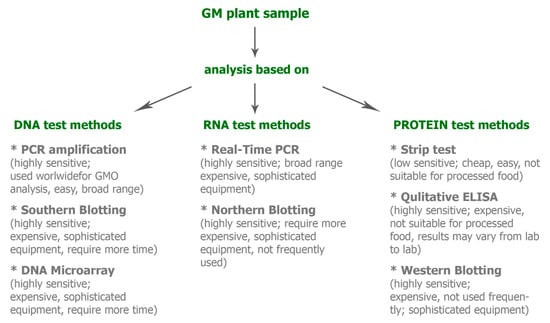 The introduction of GM plants or their products onto the market requires the knowledge and monitoring of the presence of individual genetically modified components. Therefore, an indispensable step is to the identify them at the molecular level. A wide variety of methods for this purpose are used (Figure 2).