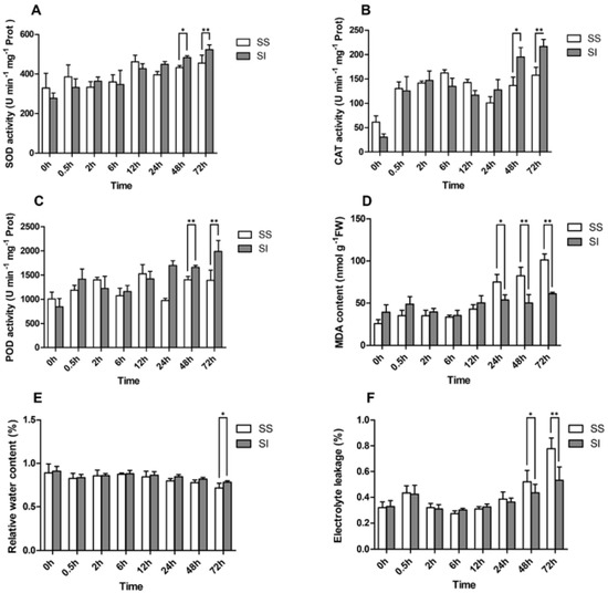 - Cavalcanti, F.R.; Oliveira, J.T.A.; Martins-Miranda, A.S.; Viégas, R.A.; Silveira, J.A.G. Superoxide dismutase, catalase and peroxidase activities do not confer protection against oxidative damage in salt-stressed cowpea leaves. New Phytol. 2010, 163, 563–571. [Google Scholar] [CrossRef] [PubMed]