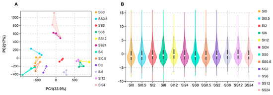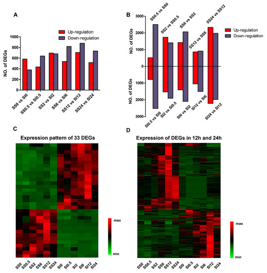 2.3. Identification of the Differentially Expressed Genes in the SS and SI Genotypes of L. Multiflorum under Salt Stress