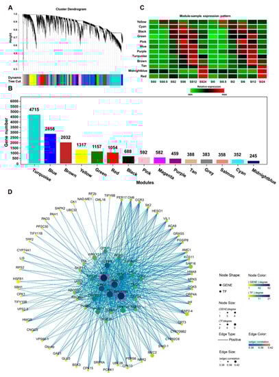 - Langfelder, P.; Horvath, S. WGCNA: An R package for weighted correlation network analysis. BMC Bioinform. 2009, 9, 559. [Google Scholar] [CrossRef] [PubMed] [Green Version]