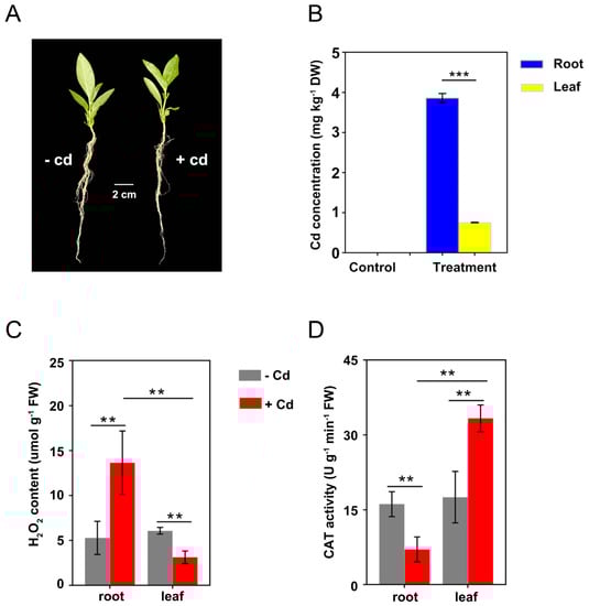 4.3. Detection of Cd Accumulation, H2O2 Concentrations, and Catalase (CAT) Activity