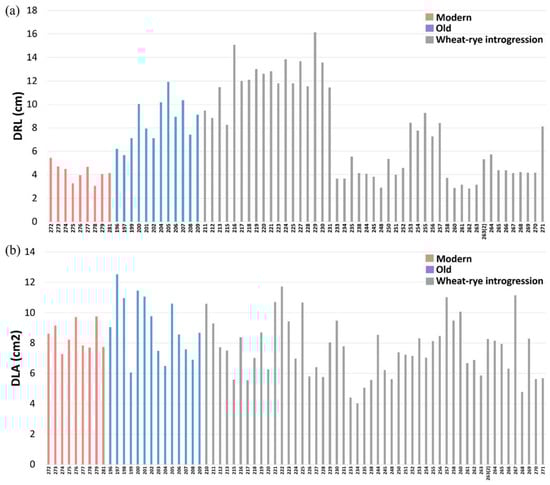 - Bektas, H.; Hohn, C.E.; Waines, J.G. Root and shoot traits of bread wheat (Triticum aestivum L.) landraces and cultivars. Euphytica 2016, 212, 297–311. [Google Scholar] [CrossRef]
