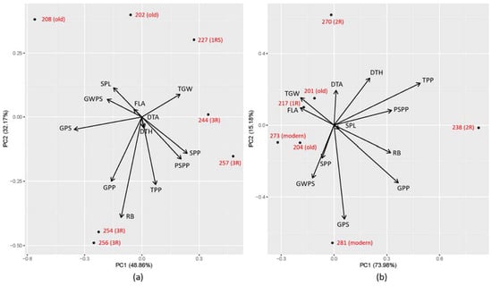- Bektas, H.; Waines, J.G. Root and shoot traits in parental, early and late generation Green Revolution wheats (Triticum spp.) under glasshouse conditions. Genet. Resour. Crop Evol. 2018, 65, 2003–2012. [Google Scholar] [CrossRef]