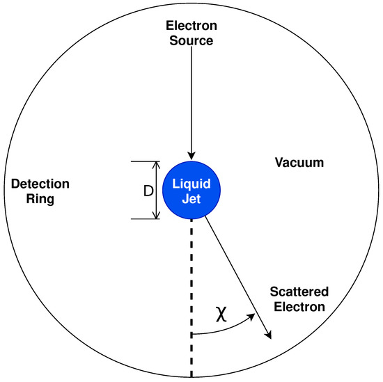 Here, we propose a new experimental technique that extends gas phase beam experiment methodologies [17] to include electron scattering from liquid surfaces, through the use of liquid micro-jets (LµJs). A constant replenishment of liquid, a small surface area, and a laminar flow enable the scattering of particles from a smooth and stable liquid surface, whilst operating in a vacuum environment. Until now, LµJ investigations have focused primarily on photon and photoelectron scattering [18,19,20,21,22,23,24,25,26,27,28,29,30]. In this work, we introduce electron scattering from LµJs and investigate the feasibility of developing effective electron–liquid cross-sections from the measured electron energy loss spectra (EELS). Unlike gas phase experiments, which are designed to ensure single scattering processes only, the proposed experiment is necessarily multi-scattering, with electrons being scattered from the surface and bulk atoms/molecules. The connection of this with traditional (multiple collision) swarm experiments [31,32,33,34] is thus clear.