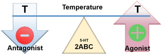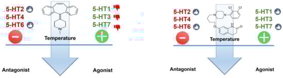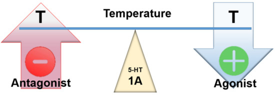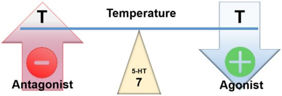 Landry et al. (2006) point out that stimulation of 5-HT7 receptors primarily results in hypothermia, a view confirmed by Naumenko’s group [65,66]. The effect is similar to that achieved by stimulation of 5-HT1A receptors (Figure 7).