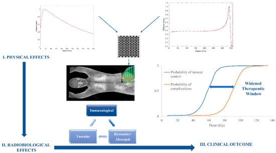 - Griffin, R.J.; Ahmed, M.M.; Amendola, B.; Belyakov, O.; Bentzen, S.M.; Butterworth, K.T.; Chang, S.; Coleman, C.N.; Djonov, V.; Formenti, S.C.; et al. Understanding high-dose, ultra-high dose rate, and spatially fractionated radiation therapy. Int. J. Radiat. Oncol. Biol. Phys. 2020, 107, 766–778. [Google Scholar] [CrossRef]