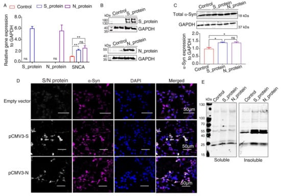2.2. α-Syn Directly Interacts with SARS-CoV-2 Proteins in HEK293 Cells