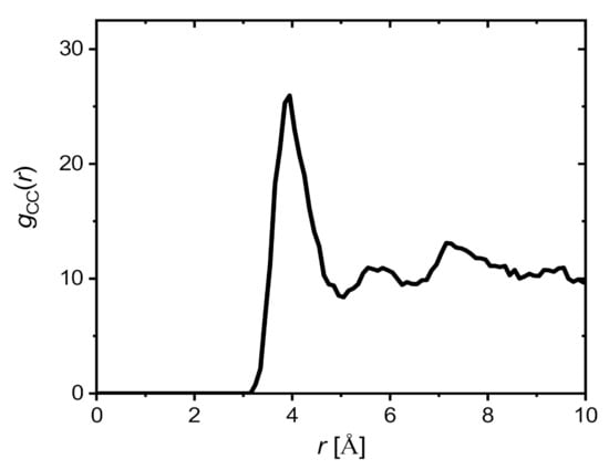 Radial pair distribution function for methyl carbon atoms of the aglycone moiety and methyl carbon atoms of rhamnose and fucose residues. The presented curve is an average over three independent simulations (system I–III, see Table 2).
