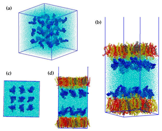 - Phillips, J.C.; Braun, R.; Wang, W.; Gumbart, J.; Tajkhorshid, E.; Villa, E.; Chipot, C.; Skeel, R.D.; Kale, L.; Schulten, K. Scalable molecular dynamics with NAMD. J. Comput. Chem. 2005, 26, 1781–1802. [Google Scholar] [CrossRef] [Green Version]