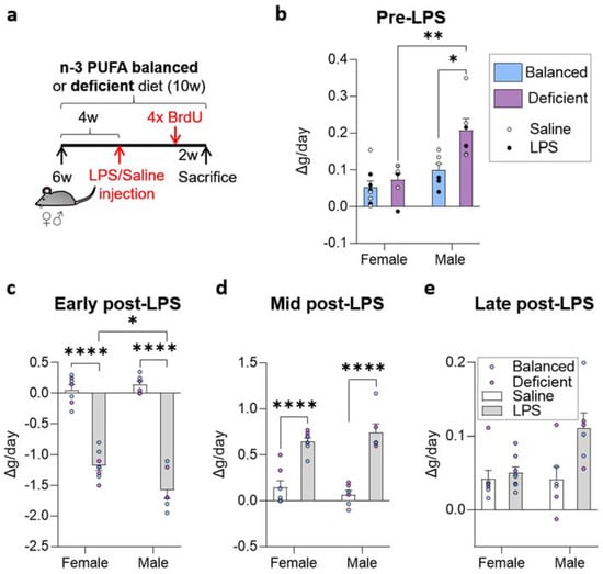 2.1. Dietary n-6/n-3 PUFA Content Did Not Affect LPS-Induced Weight Alterations