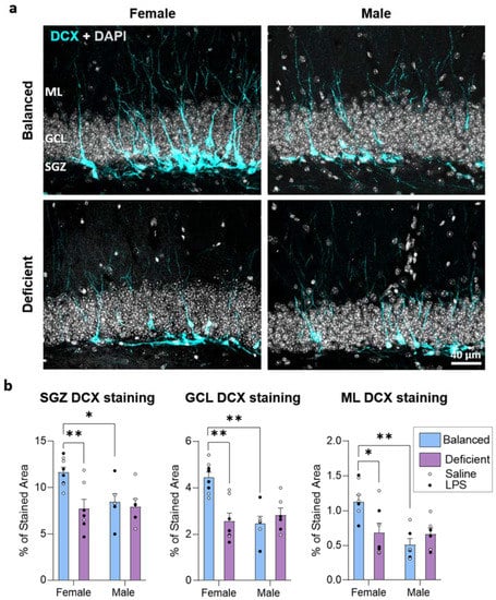 APA StyleRodríguez-Iglesias, N., Nadjar, A., Sierra, A., & Valero, J. (2022). Susceptibility of Female Mice to the Dietary Omega-3/Omega-6 Fatty-Acid Ratio: Effects on Adult Hippocampal Neurogenesis and Glia. International Journal of Molecular Sciences, 23(6), 3399. https://doi.org/10.3390/ijms23063399