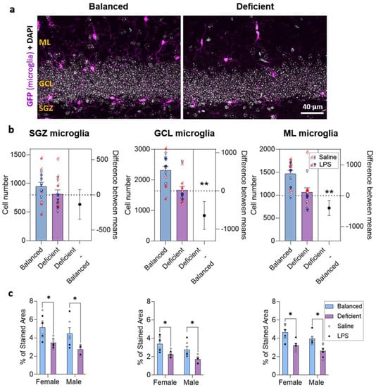 2.4. Effects of Dietary n-6/n-3 PUFA Balance on DG Microglia