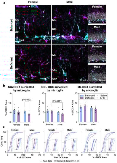 4.8. Analysis of the Extension of Doublecortin Staining, Microglia Surveilled Volume, and Colocalization
