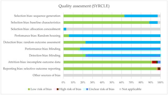 Quality assessment of animal studies using the SYRCLE tool.