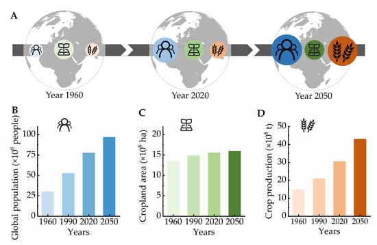 - Hickey, L.T.; Hafeez, A.N.; Robinson, H.; Jackson, S.A.; Leal-Bertioli, S.C.M.; Tester, M.; Gao, C.; Godwin, I.D.; Hayes, B.J.; Wulff, B.B.H. Breeding crops to feed 10 billion. Nat. Biotechnol. 2019, 37, 744–754. [Google Scholar] [CrossRef] [PubMed] [Green Version]