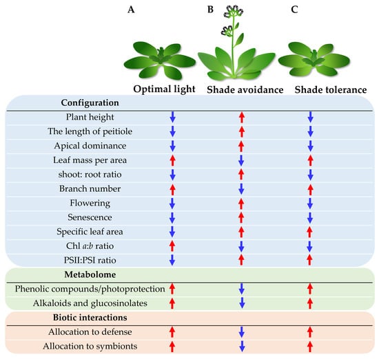 - Fernandez-Milmanda, G.L.; Ballare, C.L. Shade avoidance: Expanding the color and hormone palette. Trends Plant Sci. 2021, 26, 509–523. [Google Scholar] [CrossRef] [PubMed]