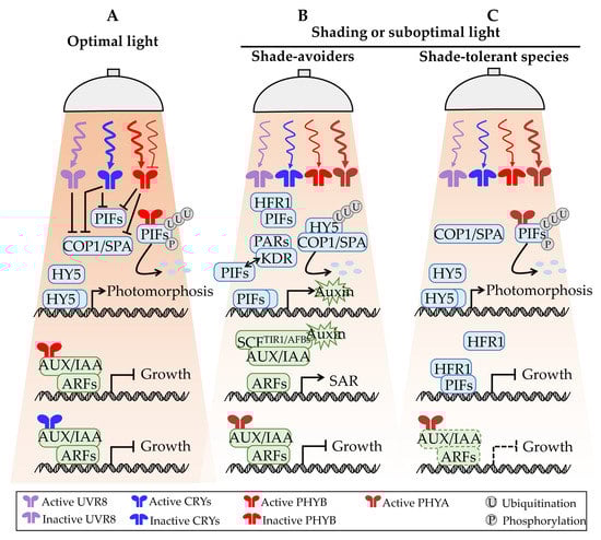 APA StyleXie, X., Cheng, H., Hou, C., & Ren, M. (2022). Integration of Light and Auxin Signaling in Shade Plants: From Mechanisms to Opportunities in Urban Agriculture. International Journal of Molecular Sciences, 23(7), 3422. https://doi.org/10.3390/ijms23073422