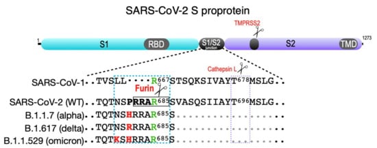 - Tang, T.; Jaimes, J.A.; Bidon, M.K.; Straus, M.R.; Daniel, S.; Whittaker, G.R. Proteolytic Activation of SARS-CoV-2 Spike at the S1/S2 Boundary: Potential Role of Proteases beyond Furin. ACS Infect. Dis. 2021, 7, 264–272. [Google Scholar] [CrossRef]