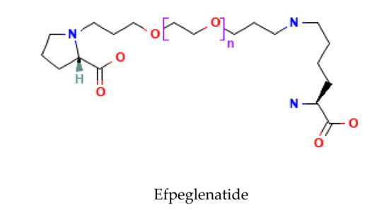 - Yoon, K.H.; Kang, J.; Kwon, S.C.; Trautmann, M.E.; Hompesch, M.; Stewart, J.; Sorli, C.H. Pharmacokinetic and dose-finding studies on efpeglenatide in patients with type 2 diabetes. Diabetes. Obes. Metab. 2020, 22, 1292–1301. [Google Scholar] [CrossRef]