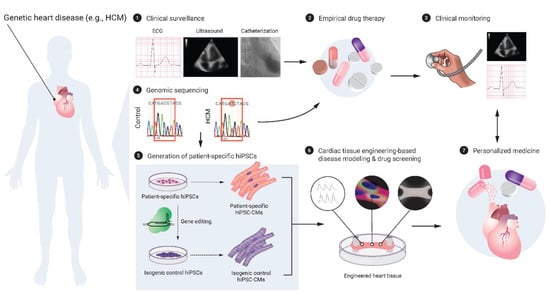 - Mosqueira, D.; Mannhardt, I.; Bhagwan, J.R.; Lis-Slimak, K.; Katili, P.; Scott, E.; Hassan, M.; Prondzynski, M.; Harmer, S.C.; Tinker, A.; et al. CRISPR/Cas9 editing in human pluripotent stem cell-cardiomyocytes highlights arrhythmias, hypocontractility, and energy depletion as potential therapeutic targets for hypertrophic cardiomyopathy. Eur. Heart J. 2018, 39, 3879–3892. [Google Scholar] [CrossRef]