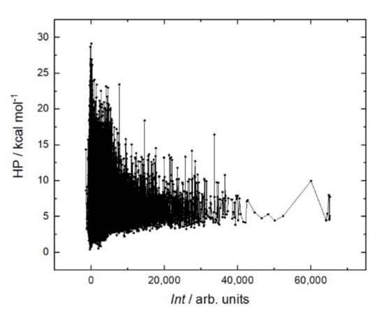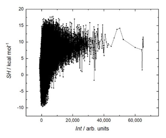 It is generally believed that a stiffer structure allows for stronger binding in peptide–protein interactions. Various methods are used to reduce entropy; for example, peptide cyclization [] or the clips method []. In the case of rituximab, a sum helix propensity was not a criterion for strong binding to the peptide (Figure 8). On the contrary, the peptides with the strongest affinity are located in the region with a low sum helix propensity of about 5 kcal mol.