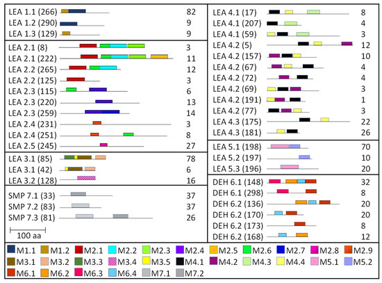 - Artur, M.A.S.; Zhao, T.; Ligterink, W.; Schranz, E.; Hilhorst, H.W.M. Dissecting the genomic diversification of late embryogenesis abundant (LEA) protein gene families in plants. Genome. Biol. Evol. 2019, 11, 459–471. [Google Scholar] [CrossRef] [PubMed]