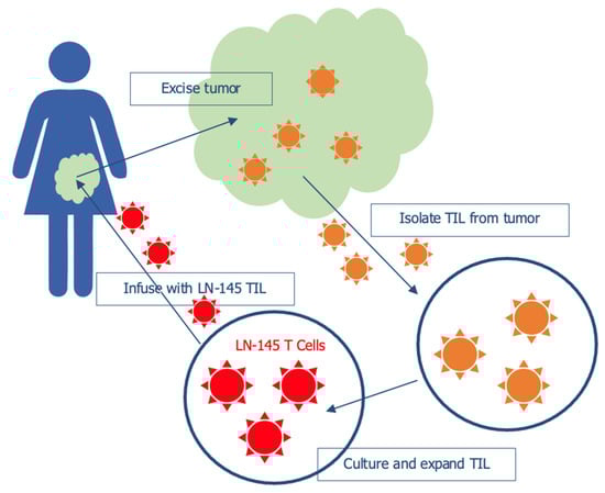 Implementation of Tumor infiltrating lymphocytes (TILs; Figure 2.) has proven to be one of the most effective and specific adaptive cell therapies (ACT). Very promising results have been obtained in various settings (melanoma, breast cancer), with less clinical data available for gynecologic malignancies, such as CC [49].