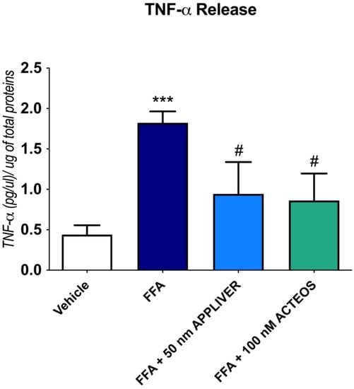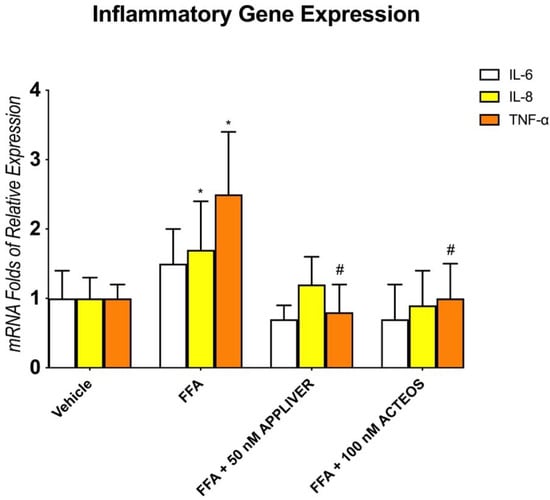 2.3. Effects of APPLIVER and ACTEOS on the Inflammatory Response
