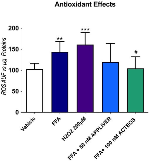 2.4. Effects of APPLIVER and ACTEOS on the Production Reactive Oxygen Species
