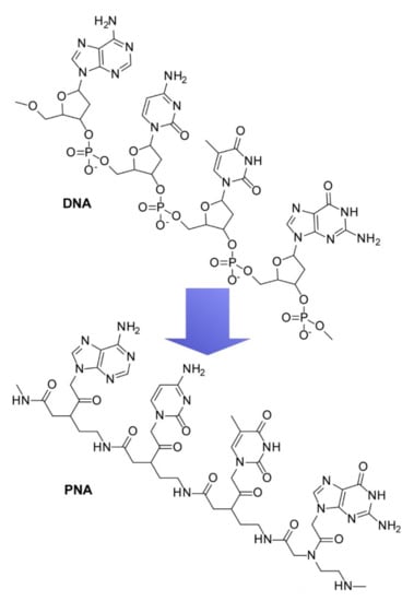 - Liang, X.; Liu, M.; Komiyama, M. Recognition of target site in various forms of DNA and RNA by peptide nucleic acid (PNA): From fundamentals to practical applications. Bull. Chem. Soc. Jpn. 2021, 94, 1737–1756. [Google Scholar] [CrossRef]