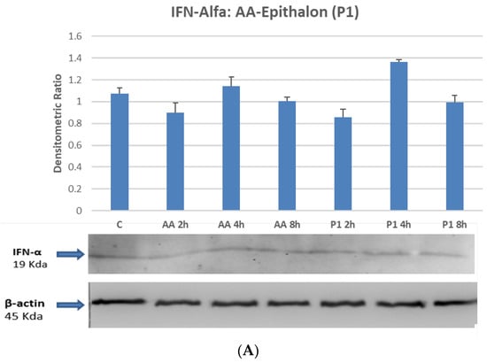 Whereas it would be very important to analytically investigate molecular mechanisms of gene activation to better understand the action of peptides in vivo, it is here reported how most of the investigated Khavinson Peptides are able to activate the phosphorylation of STAT molecules, specifically STAT1, acting alone or in co-treatment with LPS on macrophage cells. STAT1 belongs to the class of signal transduction and transcription molecules that cooperate with receptor associated kinases in transferring the cytokine-mediated biological response into the nuclei [54]. This involves an activation that is time dependent and reflects a mechanism of fine transduction regulation that takes place within the treated cells. Furthermore, it is important to point out that the STATs seem to be modulated by peptides in a receptor-independent mechanism, as stated by the observation that IFN-α modulation is not affected by amino acids or Epitalon (P1) treatment (Figure 3A). Considering that STAT1 reflects more properly a mechanism linked to the induction of type I Interferon involved in the control of viral infection through the binding to the IFN-α type one receptor, it could be plausible to speculate about the role of these peptides to mimic a similar effect.