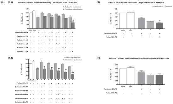 2.1. The Combined Treatment of Paclitaxel with Pirfenidone Reduces the Growth of Three Human NSCLC Cell Lines