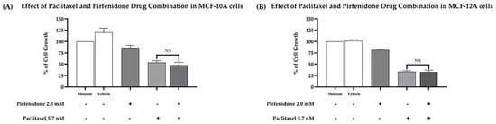 2.6. The Combined Treatment of Paclitaxel with Pirfenidone Does Not Cause More Cytotoxic Effect on Human Non-Tumorigenic Cells than Paclitaxel Alone