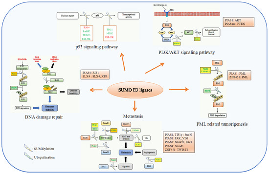 3. SUMO E3 Ligases: Dysregulation and Their Role in Human Cancer