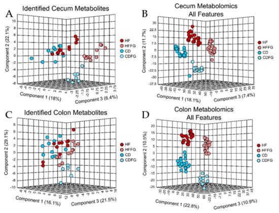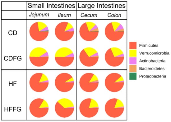 | Cecum | CD vs. CDFG | 0.654342 | 0.069 * | 0.724363 | 0.222 |