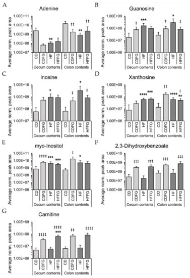 3.1. High Fat Diet Influences Purine Metabolite Abundances