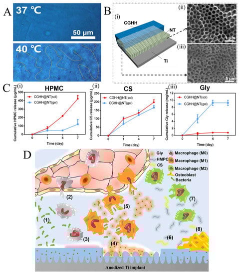 - Li, B.; Zhang, L.; Wang, D.; Liu, X.; Li, H.; Liang, C.; Zhao, X. Thermo-sensitive hydrogel on anodized titanium surface to regulate immune response. Surf. Coat. Technol. 2021, 405, 126624. [Google Scholar] [CrossRef]