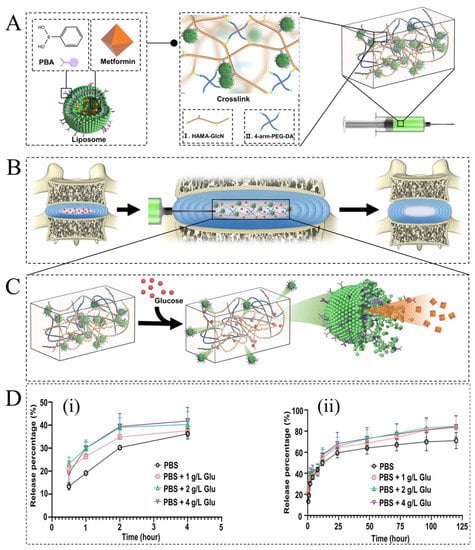 - Zheng, D.; Chen, W.; Ruan, H.; Cai, Z.; Chen, X.; Chen, T.; Zhang, Y.; Cui, W.; Chen, H.; Shen, H. Metformin-hydrogel with glucose responsiveness for chronic inflammatory suppression. Chem. Eng. J. 2022, 428, 131064. [Google Scholar] [CrossRef]