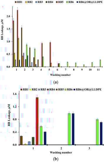 2.4. Leaching of RB from RB@ORMOSIL and RB@OR@LLDPE Specimens