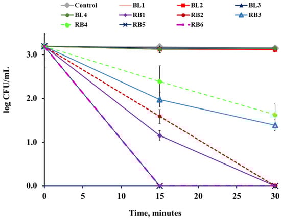 - Kurosu, M.; Mitachi, K.; Yang, J.; Pershing, E.V.; Horowitz, B.D.; Wachter, E.A.; Lacey, J.W.; Ji, Y.; Rodrigues, D.J. Antibacterial Activity of Pharmaceutical-Grade Rose Bengal: An Application of a Synthetic Dye in Antibacterial Therapies. Molecules 2022, 27, 322. [Google Scholar] [CrossRef] [PubMed]