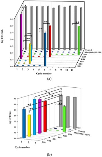 2.5. Antimicrobial Activity of RB@ORMOSIL and RB@OR@LLDPE Specimens