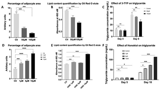 2.4. Honokiol Suppressed Adipocyte-Specific Cytokines. In Contrast, 3-TYP Increased Adipocyte-Specific Hormones