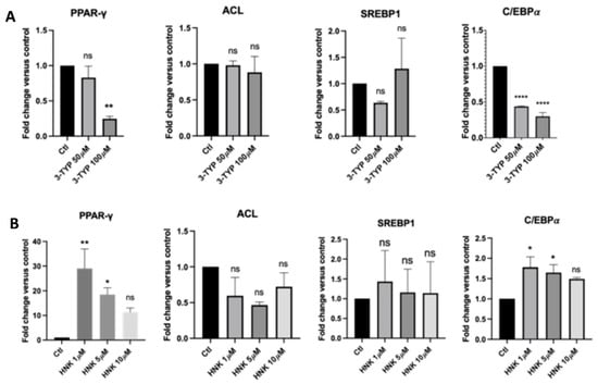 2.2. Honokiol Enhances the Expression of Adipocyte-Specific and Adipogenesis Genes. In Contrast, 3-TYP Decreases Levels of the Expression of Adipocyte-Specific and Adipogenesis Genes