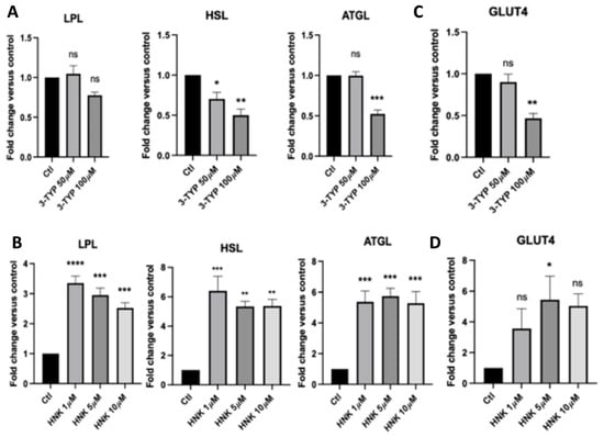 2.3. Honokiol Enhances the Expression of Genes in Lipolysis and Glucose Transport (GLUT4). In Contrast, 3-TYP Decreases Levels of the Expression of Genes in Lipolysis and Glucose Transport (GLUT4)